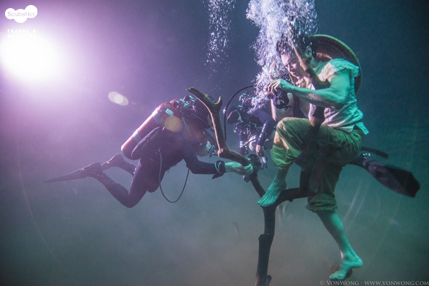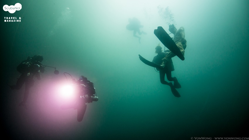 황화수소 층이 수중강을 만들고 있다그런 아이디어를 현실화시키는 것은 쉽지가 않다. 수중 인물사진을 촬영하는 것은 일반적으로 매우 복잡하다. 노출의 법칙과 장비의 요구 등이 육상과는 완전히 달라지는 것은 물론이고 호흡하고, 의사소통하고, 자세를 취하고, 움직이는 것 같은 단순한 일들까지도 더욱 복잡해진다.